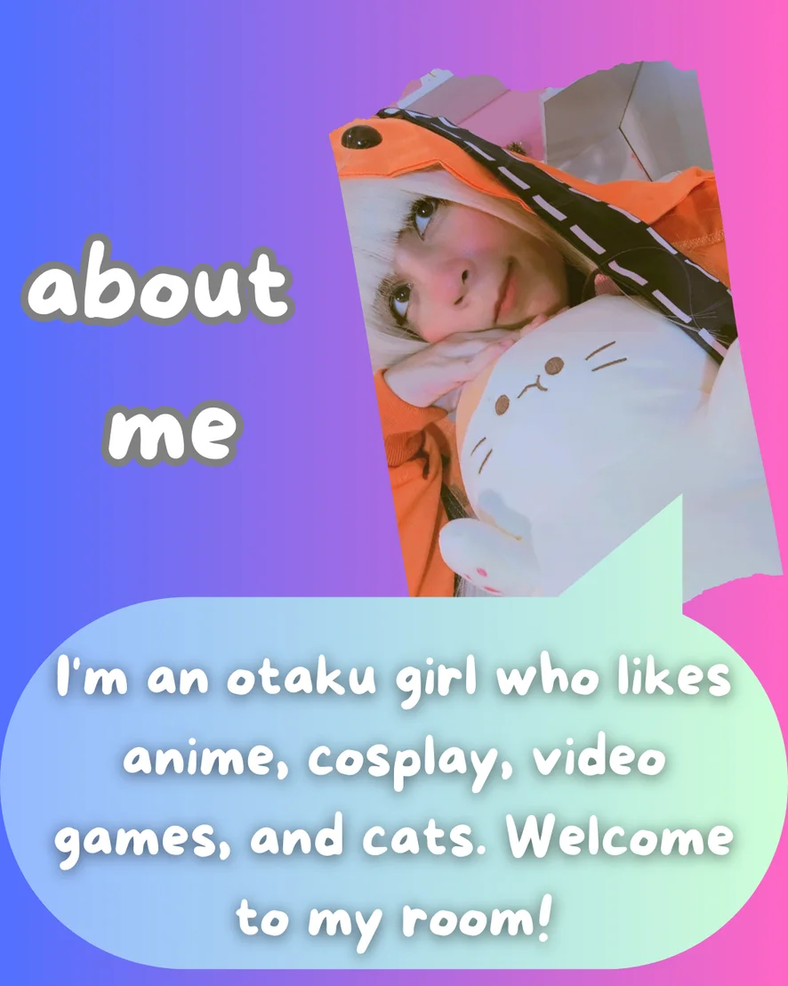 I'm an otaku girl who likes anime, cosplay, video games, and cats.